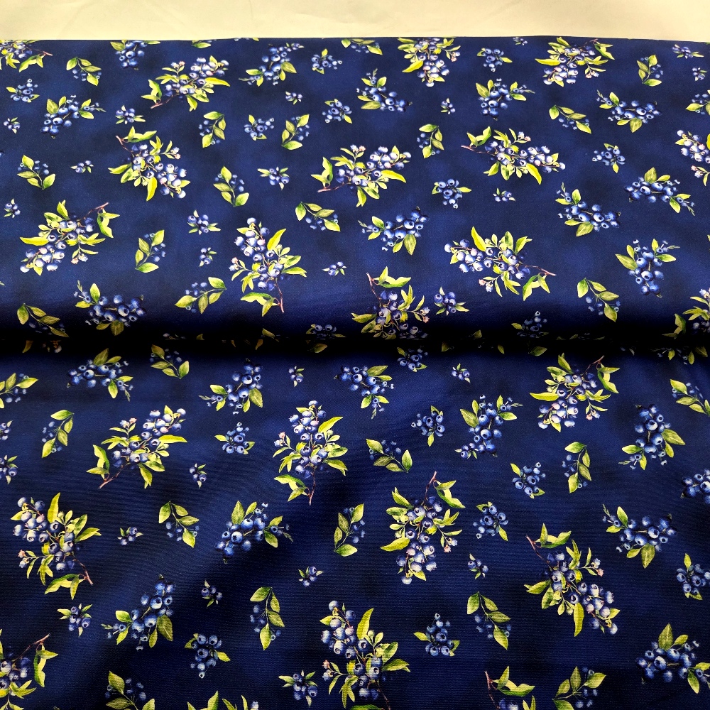 Jättesött tyg med blåbär på marin botten
