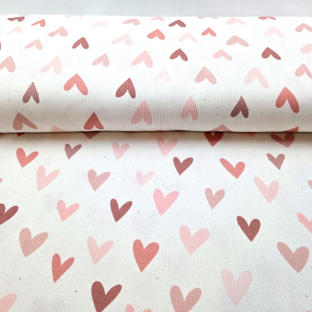 Ribbad jersey Hearts från Lausemia Design Studio kombinerar en lätt ribbad textur med en avsiktligt modern tolkning av ett hjärtmotiv.
