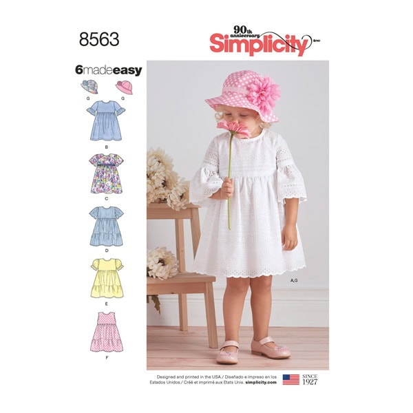 8563 Simplicity Barnmönster klänning hatt