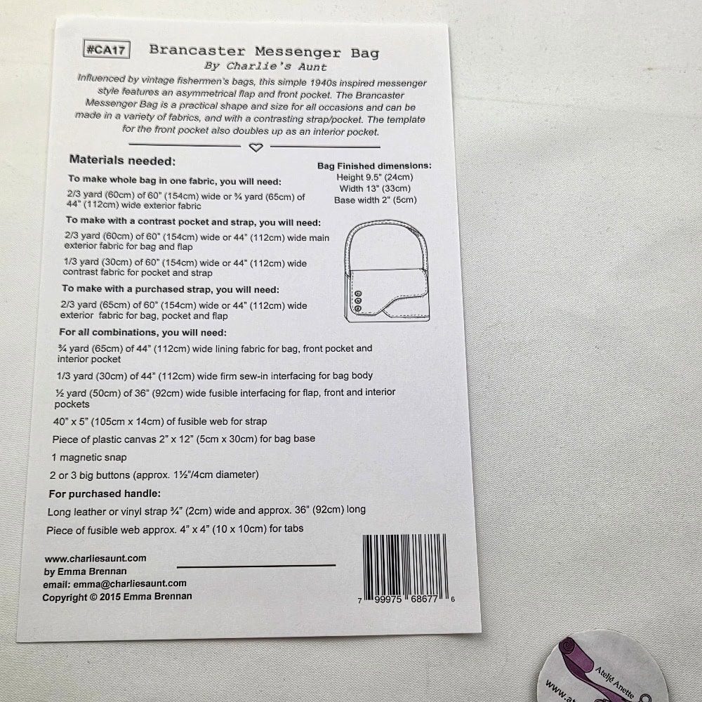 Mönstret Brancaster Messenger Bag från Charlie’s Aunt är en 1940-talsinspirerad design med en snygg asymmetrisk flik och framficka.