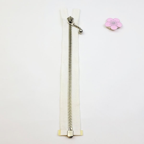Dragkedjan är off vit med vitt tyg, passar till dockkläder
