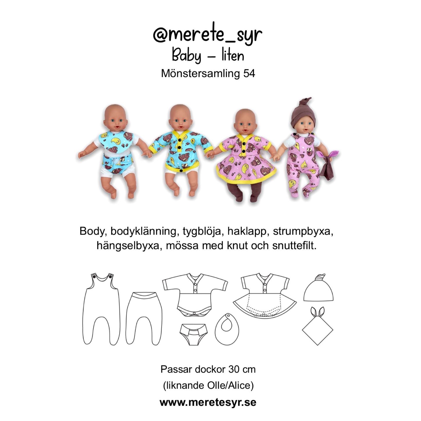 Dockmönster Mönstersamling nr 54 Baby-liten från Merete syr