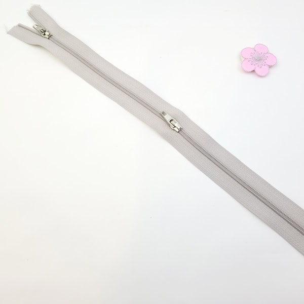Ej Delbar dragkedja 4 mm Ljusgrå med två löpare metall