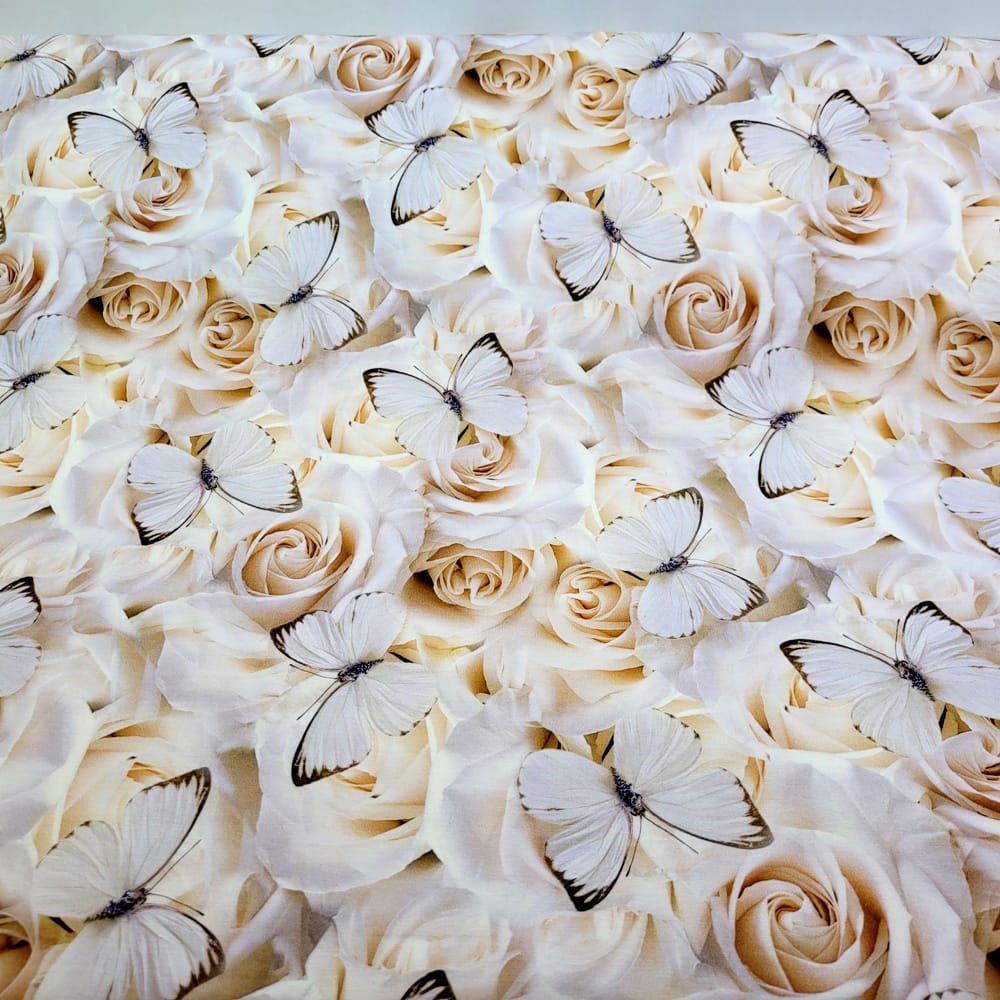 Ett underbart tyg med söta rosor och vackra fjärilar
