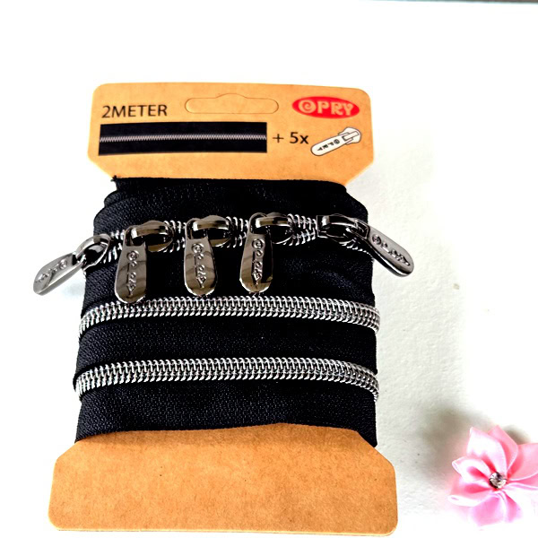 23669-4 Opry Dragkedja Förp 2 meter Svart med påträdda löpare