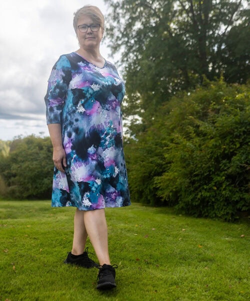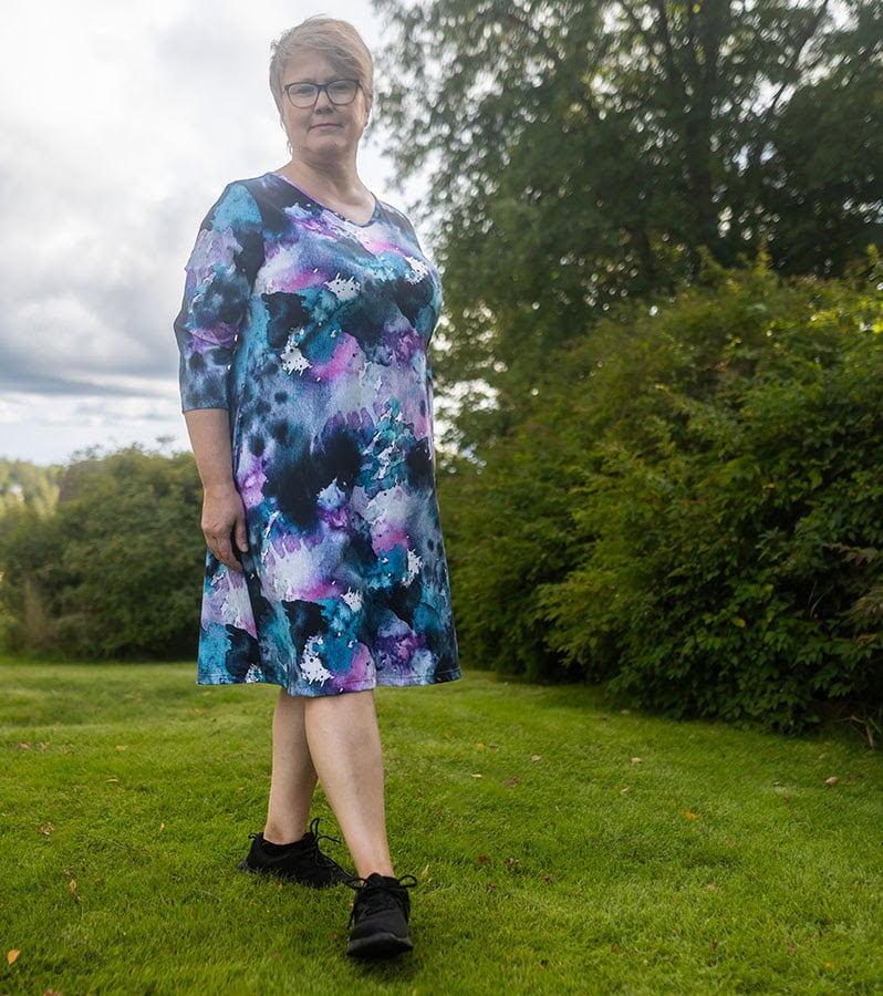 Den fastnar aldrig i en enda form, utan lämnar oändligt utrymme för personlig tolkning. Slutresultatet är livfullt och livfullt. Mönstret är designat av Anniina Isokangas.