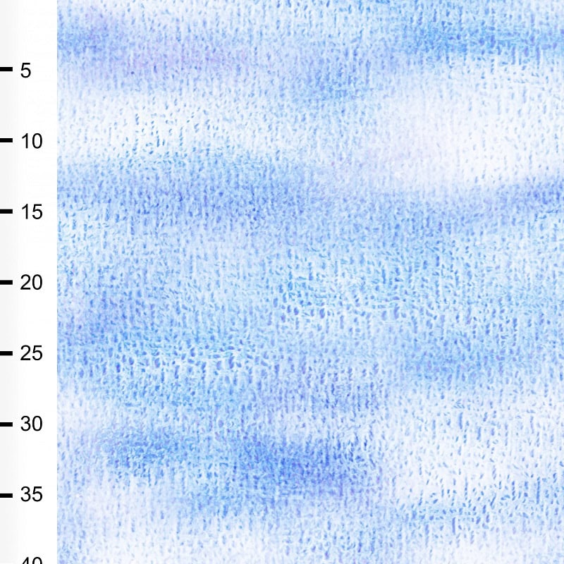 Det akvarellmålade mönstret och dess mjukt formade molnslöjor svävar på en blekblå bakgrund, som sockervadd som bärs av vinden.