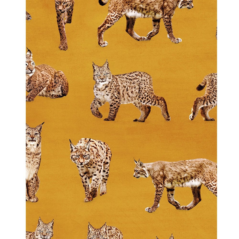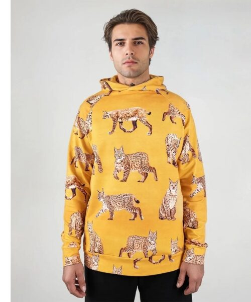 PaaPii Eko digitaltryck Sweatshirt Lynxes Amber Ochre med öglad avigsida