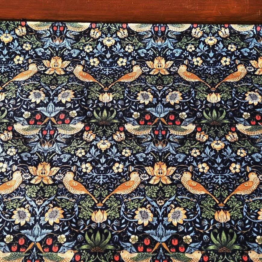 PWWM002-NAVYX Bomullstyg Morris Fåglar o bär