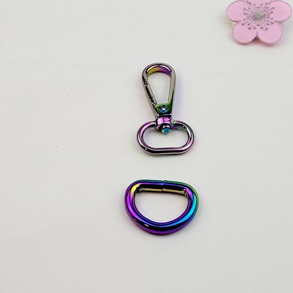 Set Karbinhake och D-ring 20 mm Regnbågsfärg