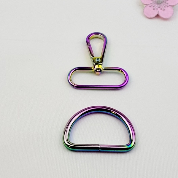 Set Karbinhake och D-ring 38 mm Regnbågsfärg