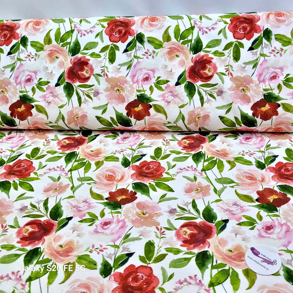Trikåtyg Jule Rosor på vit botten Stuv 0,55 meter