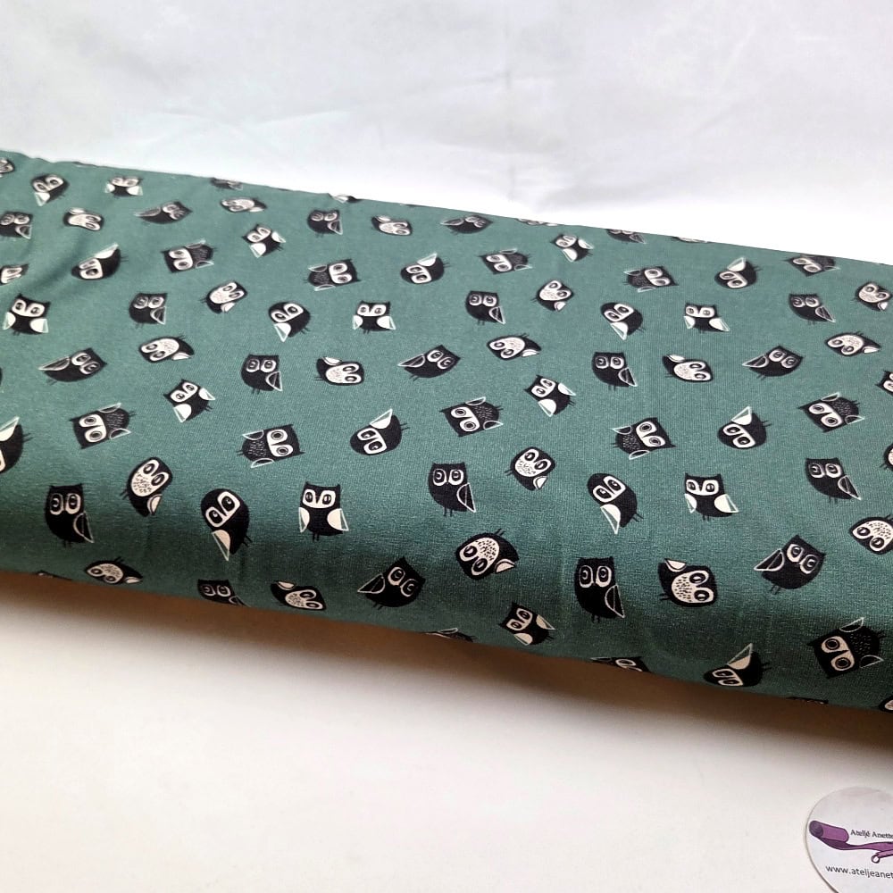 Trikåtyg Små Ugglor på grön botten