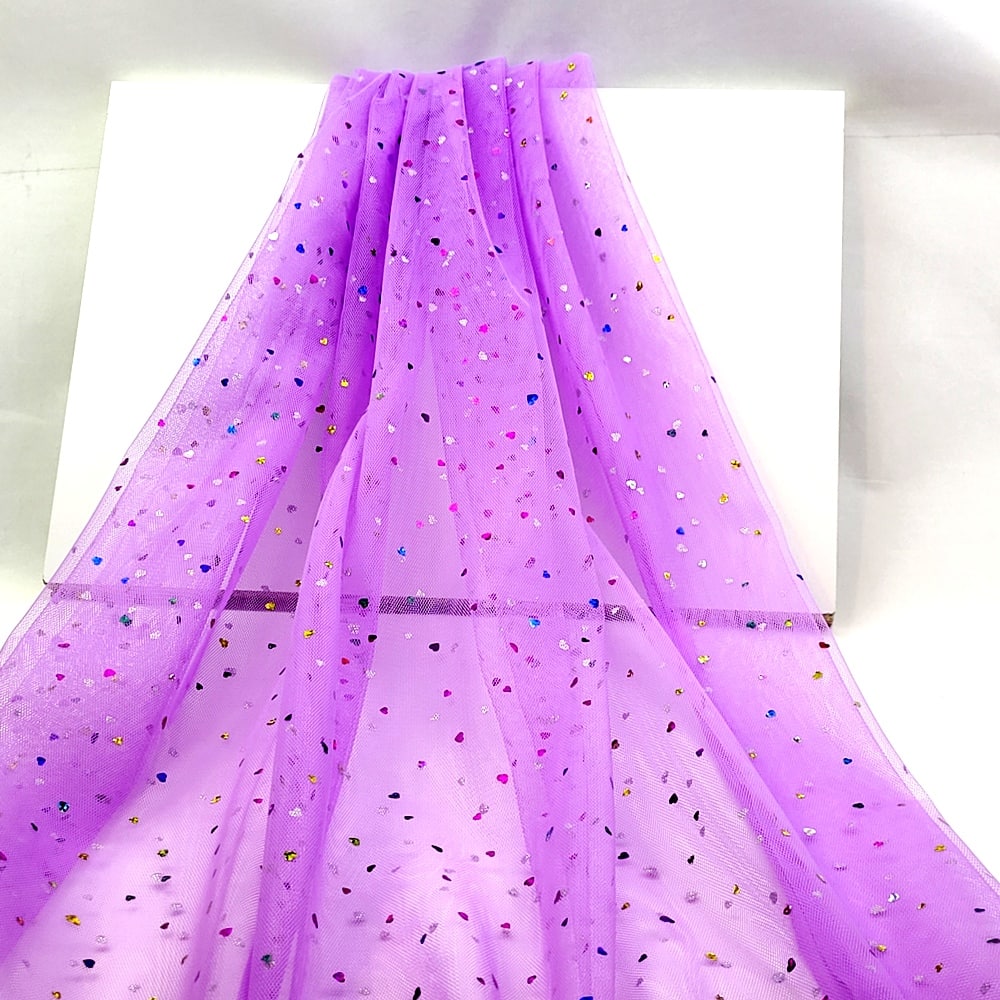 Tyll Mjuk Lila med glitter hjärtan flerfärgad