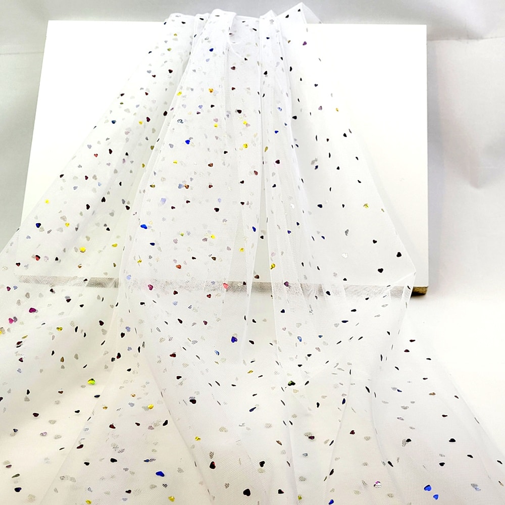 Tyll Mjuk Vit med flerfärgad glitterhjärtan
