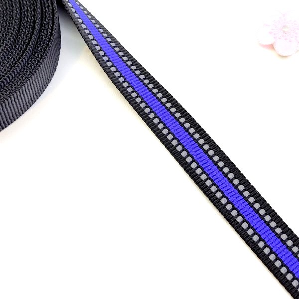 Väskband 20 mm med invävd reflex tråd. Perfekt för den som vill synas i mörkret.