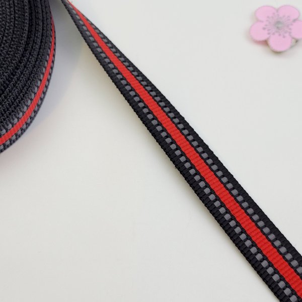 Väskband 20 mm med invävd reflex tråd. Perfekt för den som vill synas i mörkret.